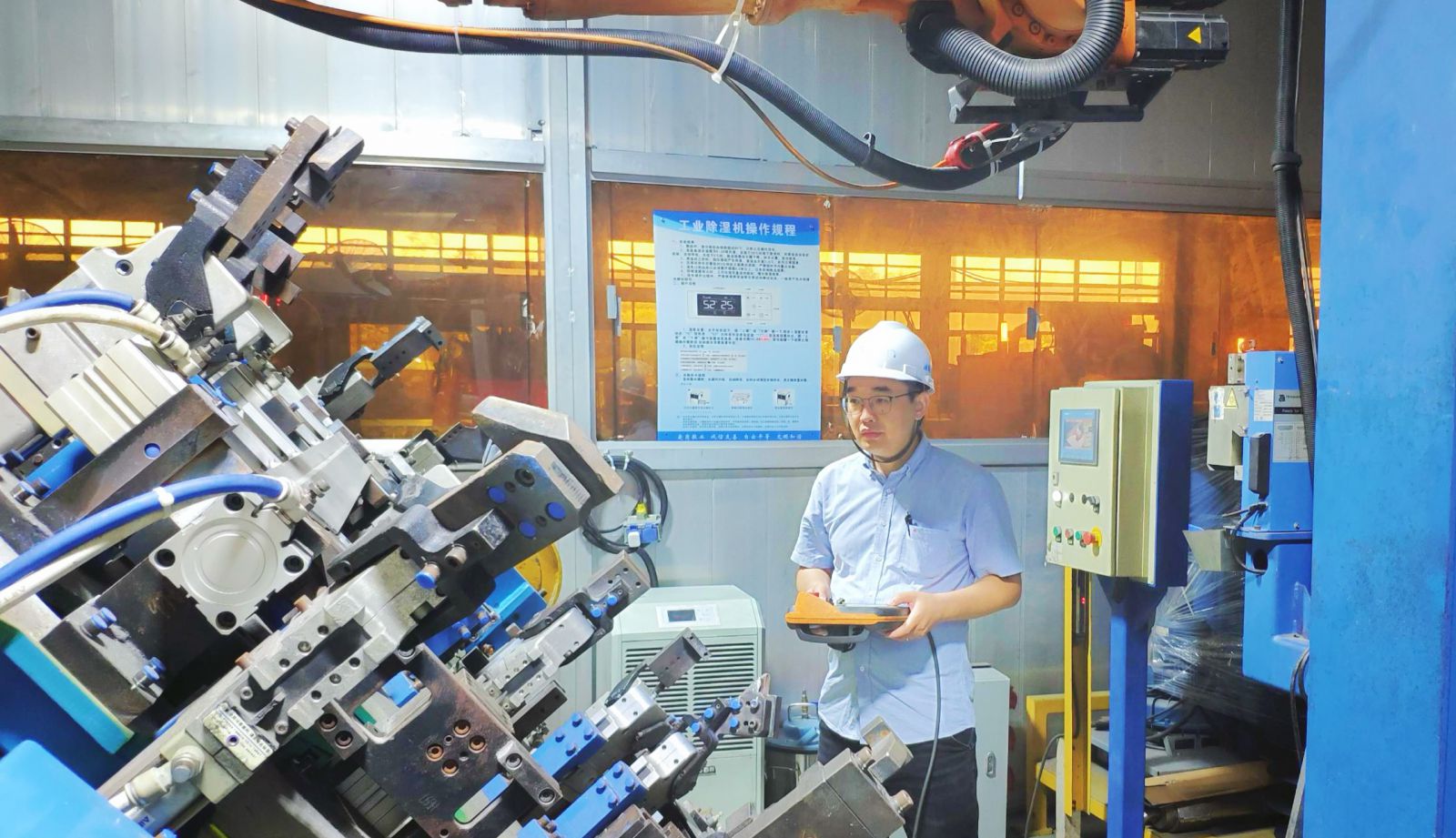 龍苗在車(chē)間指導(dǎo)工作(左2)